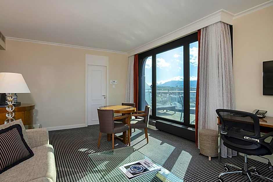 The suite is located on the top floor and features a private terrace with panoramic views over the Lake or the city scenery. It includes a living/bedroom, a private lounge, and 2 bathrooms. A free bottle of water per day and dry cleaning of one piece a day will be offered during your stay. A Nespresso coffee machine, complimentary coffee and tea making facilities, access to the offsite Sports Club, and a free public transportation pass are provided as well.